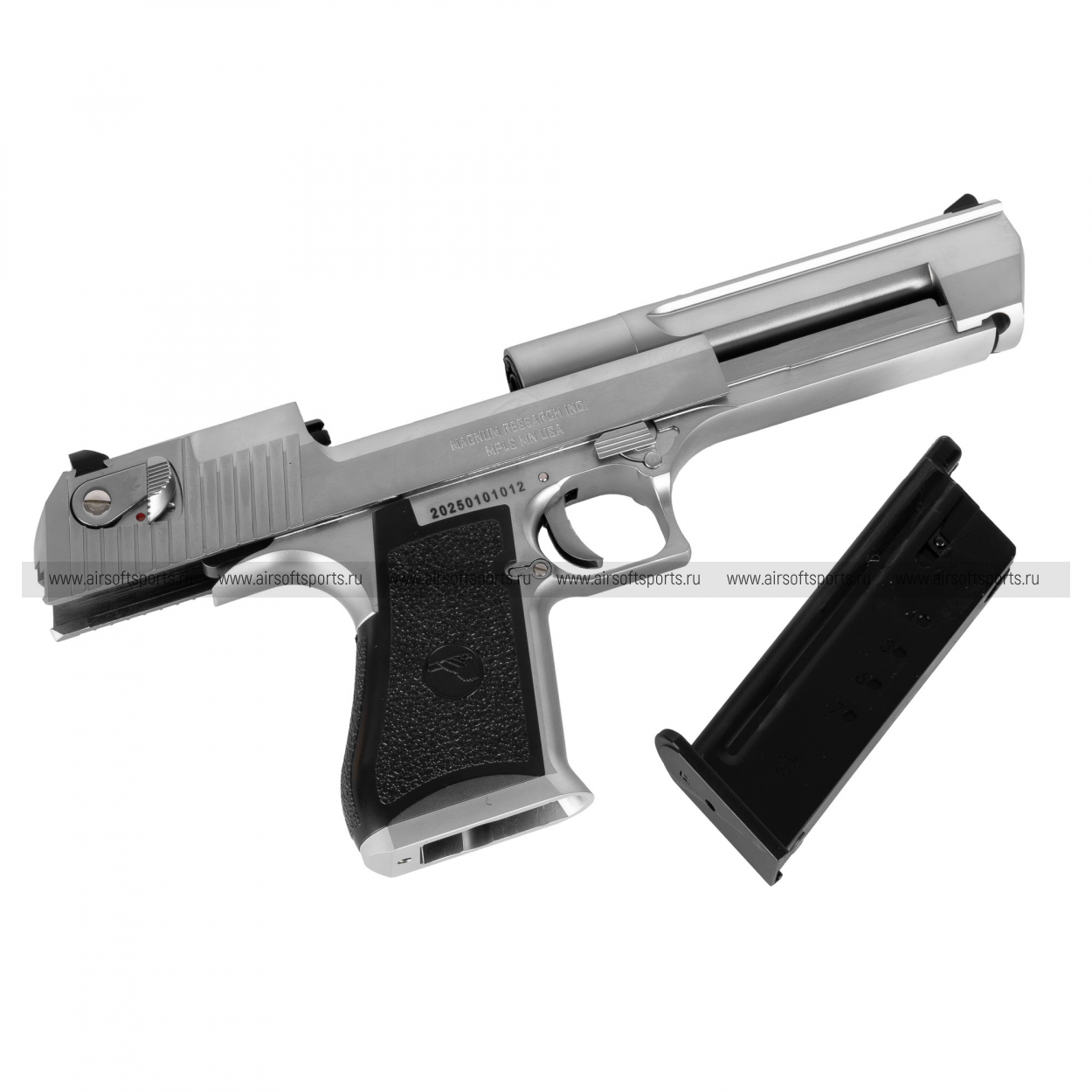 Страйкбольный пистолет работает по принципу GBB (Gas Blow-Back), обеспечивая одну из самых мощных и зрелищных отдач в страйкболе. Модель выполнена в эффектном хромированном цвете (Silver) по лицензии Magnum Research на базе механики компании WE.