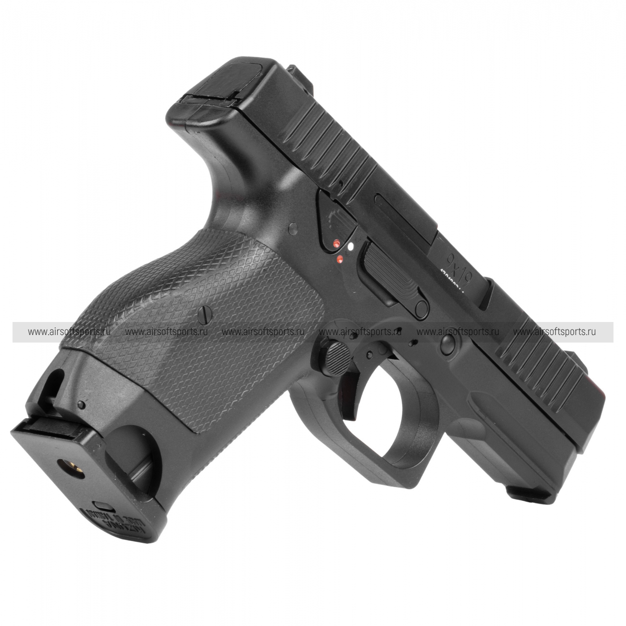 Пистолет работает на Green Gas. Заправка пистолета происходит через клапан магазина. Полностью заряженного газом магазина хватает на 25 выстрелов.