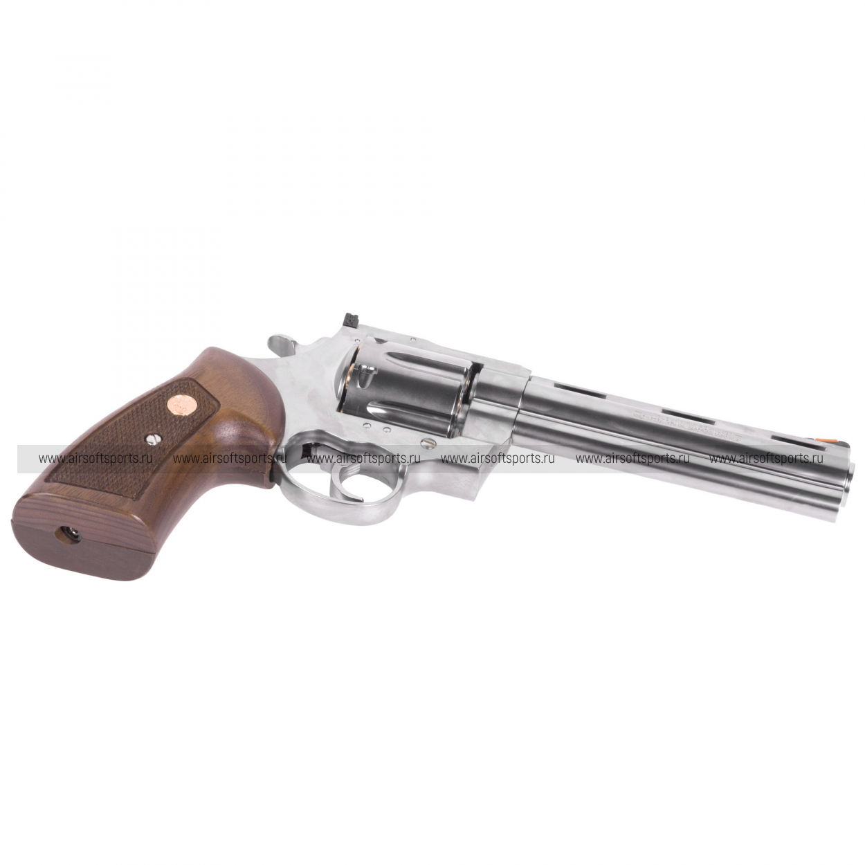 Длина ствола — 6 дюймов, что способствует точности стрельбы и делает модель особенно привлекательной для любителей дальних дистанций. Револьвер работает на газе (GAS), обладает плавным спуском и реалистичной работой барабана, что добавляет удовольствия от использования.
