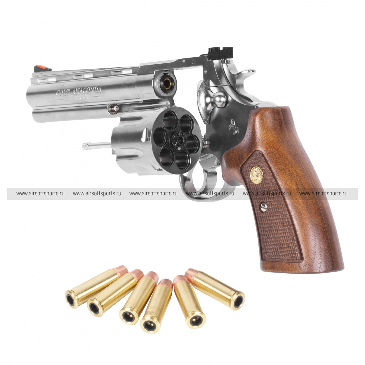 Страйкбольный пистолет (Marushin) Anaconda 44 Magnum Revolver 6 inch Silver with Wood Grip