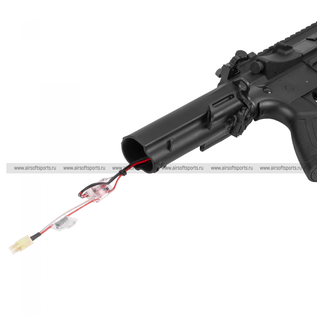 Автомат работает по принципу AEG, а благодаря современной электронике и компактным габаритам идеально подходит для работы в зданиях (CQB) в любое время года.