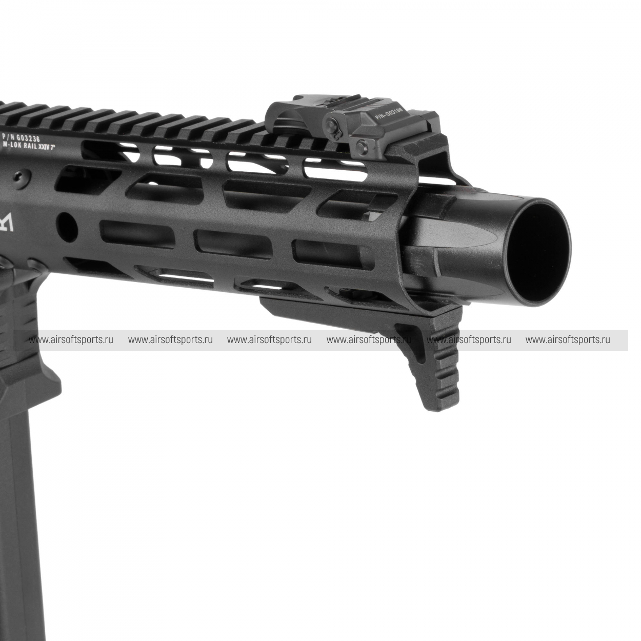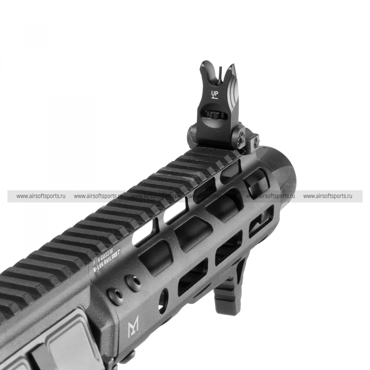 ARP9 2.0 выглядит очень современно, стремительно и агрессивно. Компактная передняя часть с облегчённым цевьём и крупными геометричными вырезами делает силуэт легким и динамичным, а длинная верхняя планка визуально объединяет всю конструкцию. Низкопрофильные складные прицельные приспособления аккуратно вписываются в общий образ, а укороченное дульное устройство подчеркивает штурмовой характер модели. Отдельного внимания заслуживает вытянутый магазин формата пистолет-пулемёта — он сразу выделяет привод на фоне классических AR-платформ и делает внешний вид более оригинальным. Телескопический приклад с современным облегчённым дизайном и эргономичная пистолетная рукоять завершают образ, делая модель стильной, компактной и очень актуальной по внешнему исполнению.