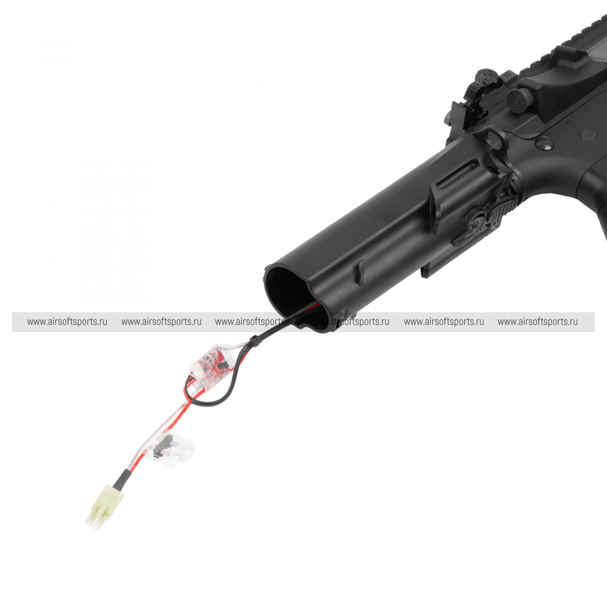 — Электронный блок (ETU) и MOSFET (микропереключатель на спуске, программируемая отсечка на 3 выстрела, защита аккумулятора, разъем Mini-Tamiya)