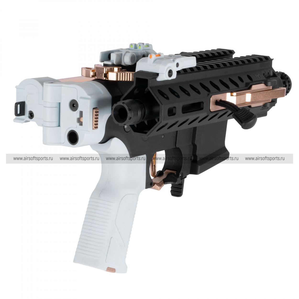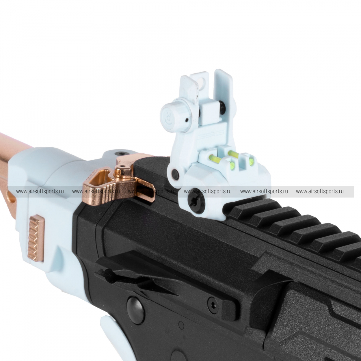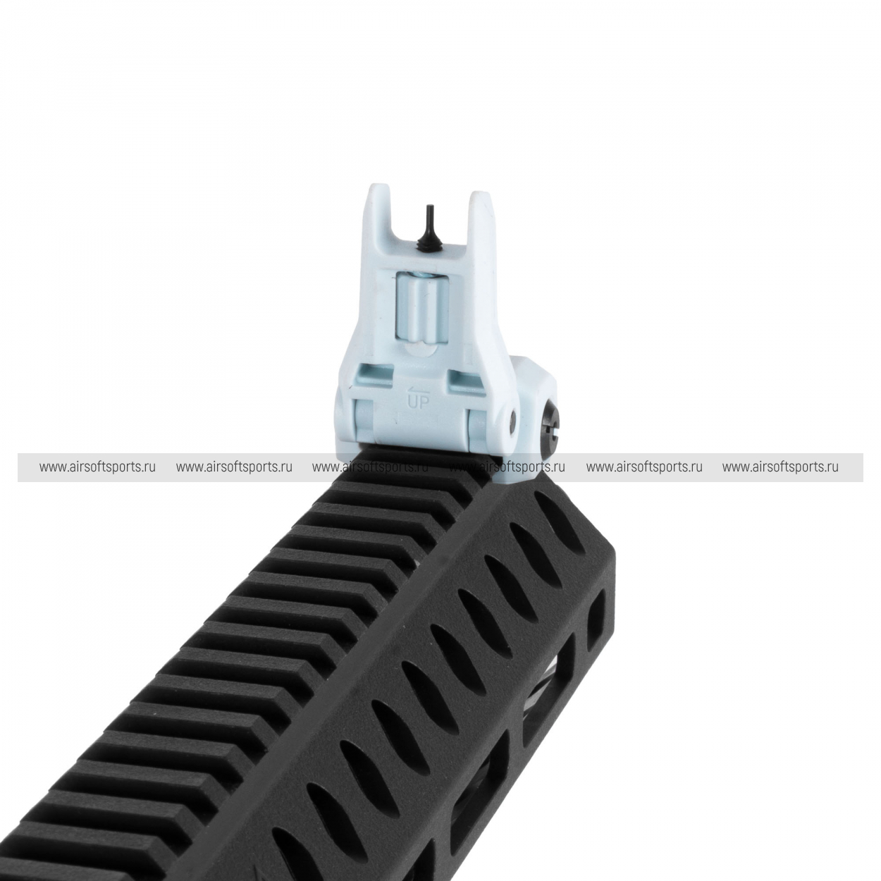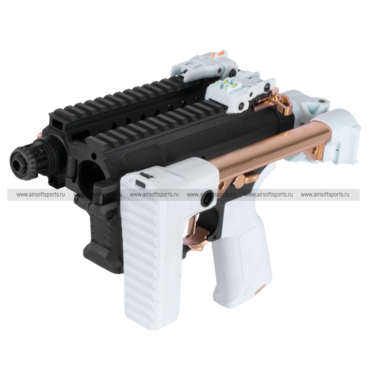 Автомат оснащен складным прикладом, который позволяет регулировать длину оружия в зависимости от предпочтений стрелка и условий игры. Это обеспечивает комфортное использование как в ближнем, так и в дальнем бою. А для удобства транспортировки и хранения, можно дополнительно сложить цевье и убрать девайс, например, в такитический рюкзак.