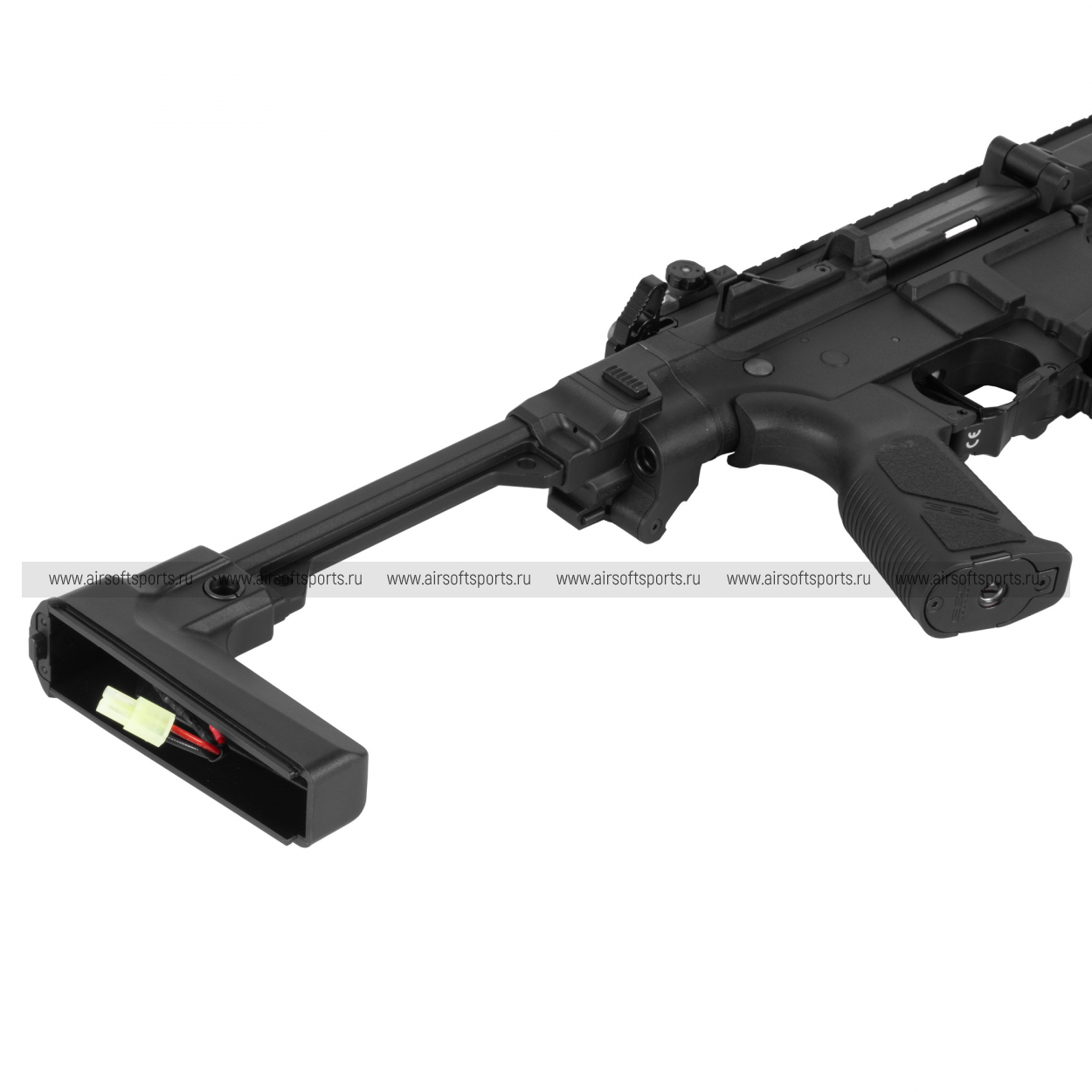 Аккумуляторный отсек располагается в прикладе, Рекомендуемые характеристики аккумулятора: AK-type, Mini-Tamiya.