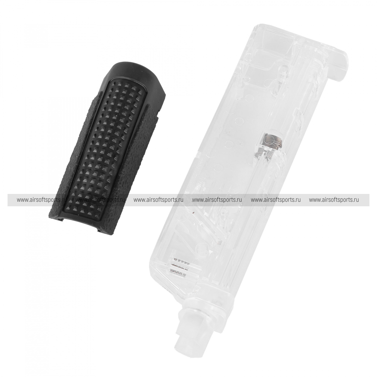Источник питания (газ Green Gas) заправляется непосредственно в магазин. Внутри рукоятки и магазина предусмотрены уплотнительные кольца повышенной надежности для минимизации утечек при темповой стрельбе.