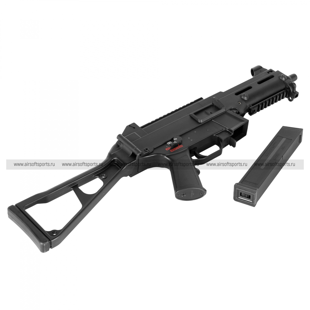 Страйкбольный пистолет-пулемет работает по принципу AEG, что позволяет эффективно использовать его как в теплое время года, так и зимой.