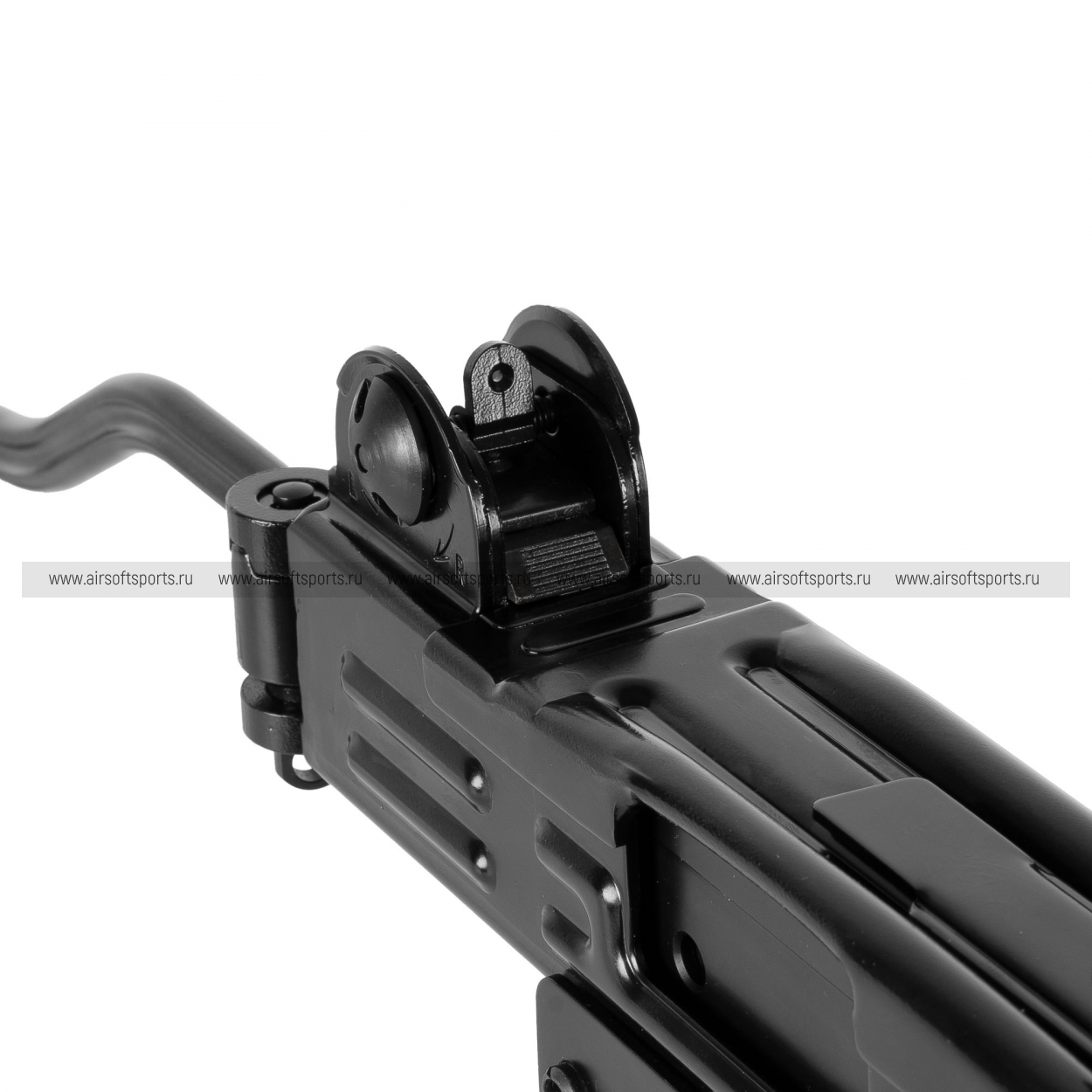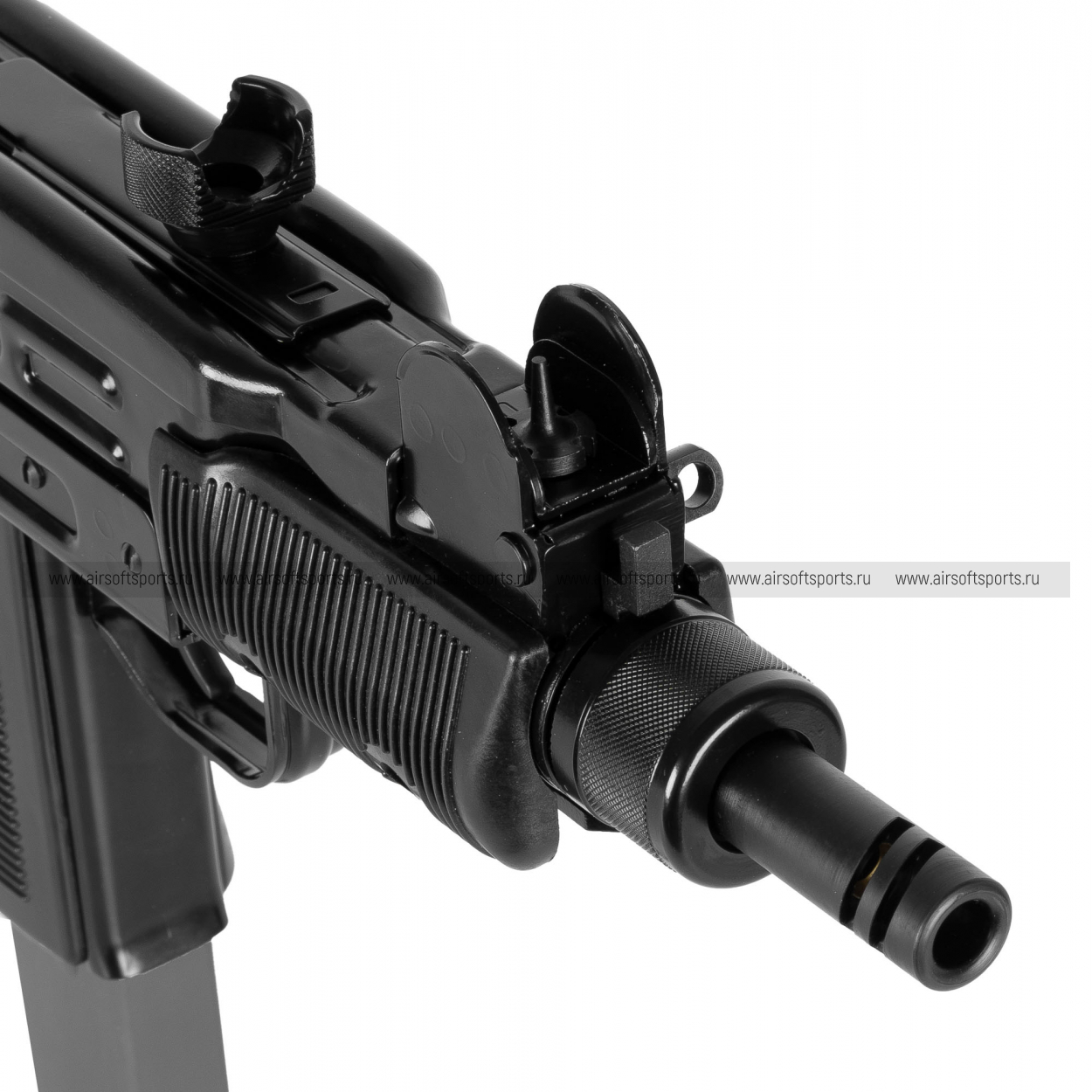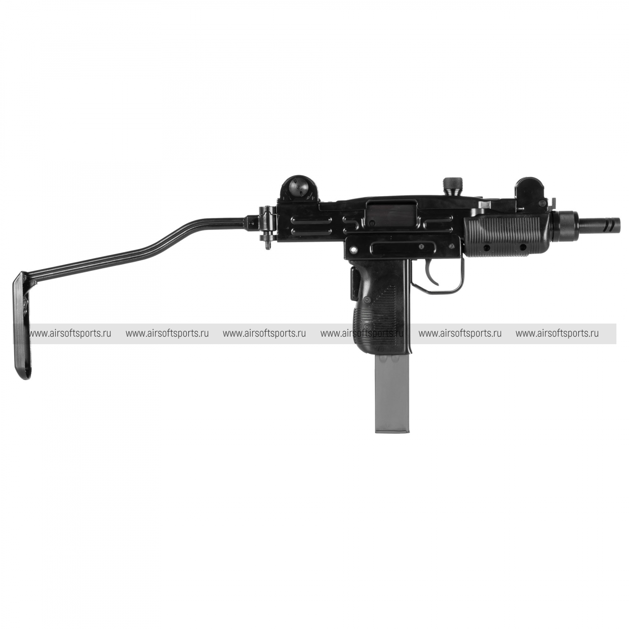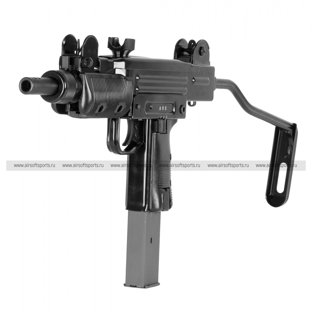 Заправка газом осуществляется через клапан в нижней части магазина. Привод оснащен легендарным складным стальным прикладом и тремя предохранителями (переводчик режимов, автоматический предохранитель на рукояти и предохранитель затвора). Модель отличается невероятной детализацией: все клейма и метод обработки поверхности соответствуют оригинальным израильским образцам.