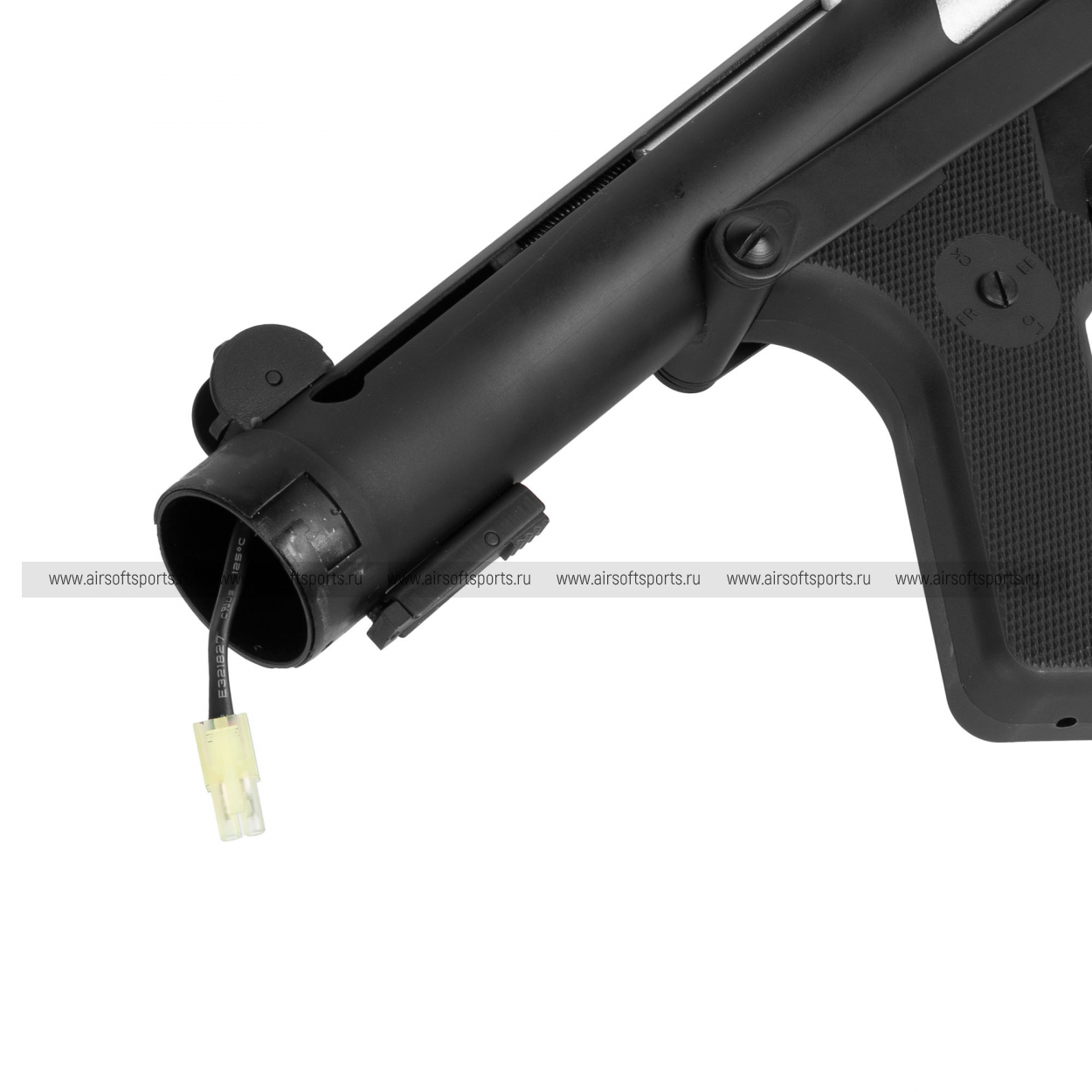 Отсек для аккумулятора находится в прикладе. Внутри достаточно свободного места для установки стандартных аккумуляторов с разъемом Mini-Tamiya Привод без каких-либо доработок способен питаться от аккумуляторов напряжением как 7.4В.