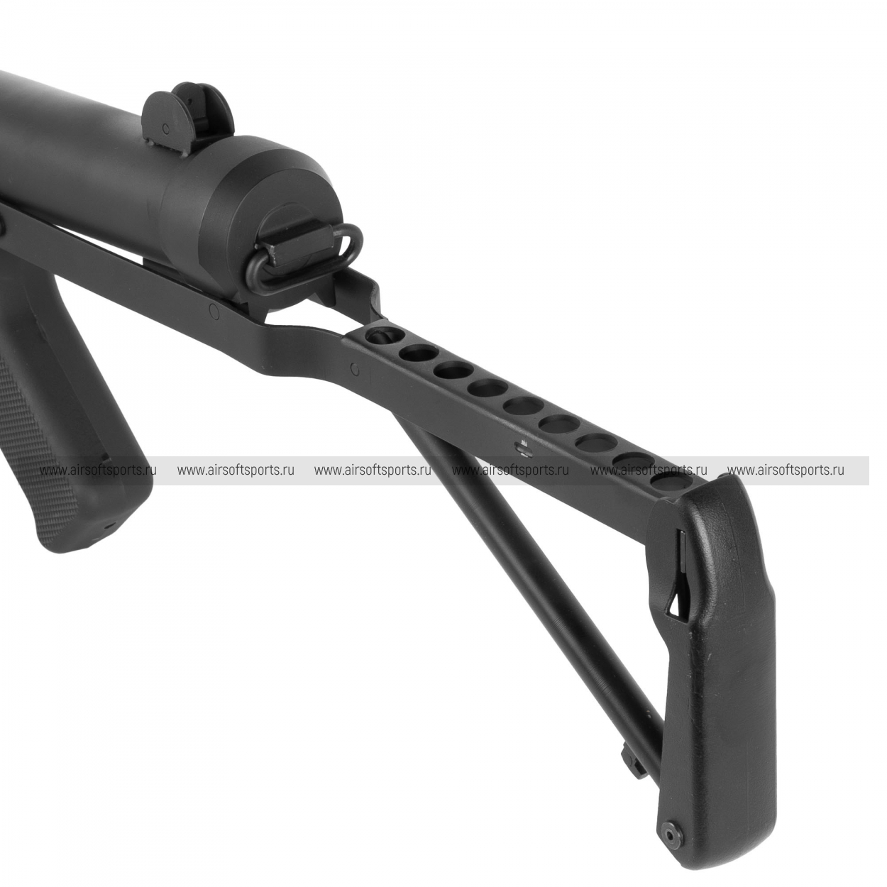 Внутри установлен уникальный силуминовый гирбокс Custom Type (специфический 9-мм корпус для Sterling), созданный специально под данную модель ПП, с быстросъемной пружиной.