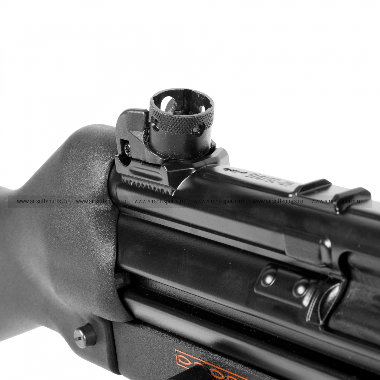 Внутри установлена фирменная коробка с электронной защитой и быстрым откликом на спуск, благодаря чему MP5A4 NGRS уверенно отрабатывает одиночный огонь и даёт ровную насыпь при длинных очередях. Регулировка hop‑up осуществляется привычно через окно выброса гильз — ход регулировки плавный и точный, позволяющий подстроить траекторию под разные массы шаров. Стабильная заводская энергия укладывается в рамки большинства полигонов, а звук работы — без паразитных вибраций.