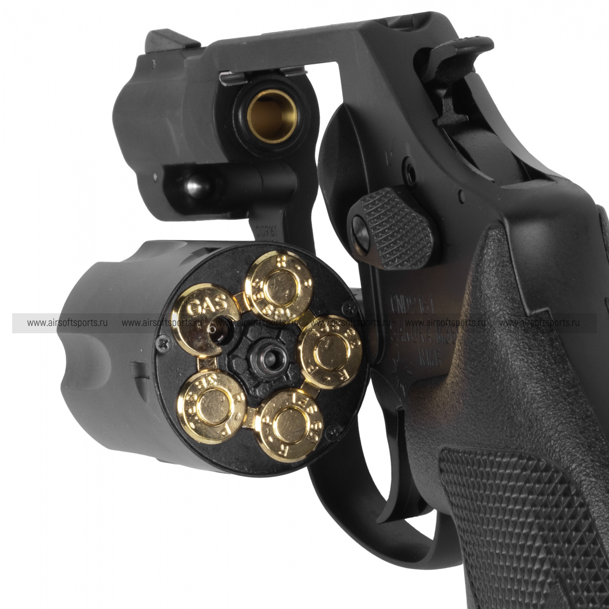 Револьвер работает на Green Gas. Резервуар находится в барабане, а клапан выведен в одну из гильз.