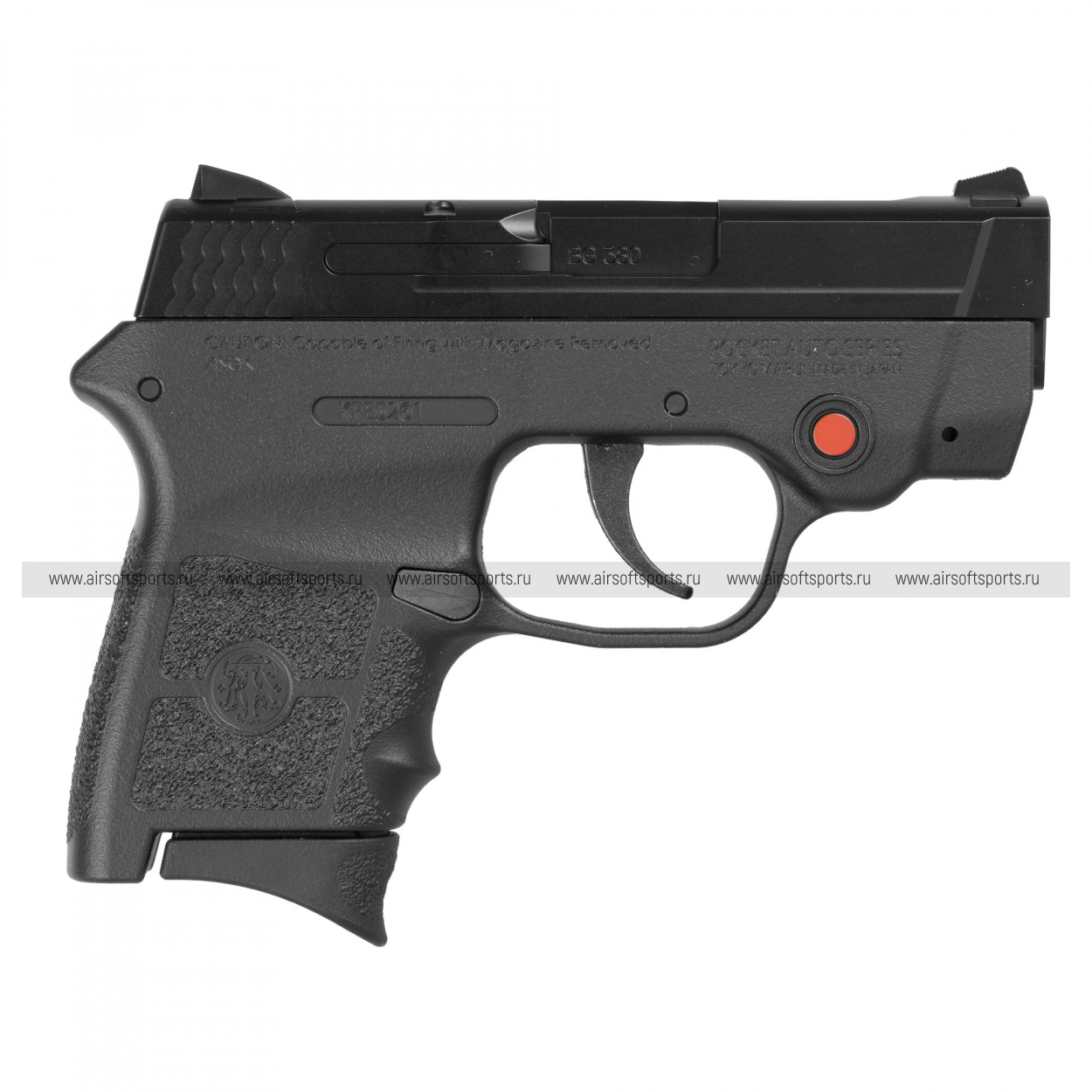Tokyo Marui Bodyguard 380 выглядит компактно, лаконично и по-настоящему «карманно». У модели короткий затвор, минималистичный корпус и очень аккуратные пропорции, благодаря которым пистолет сразу воспринимается как оружие скрытого ношения. Несмотря на малые размеры, он не выглядит игрушечно — наоборот, строгие линии, текстурированная рукоять и сдержанный чёрный цвет придают ему вполне серьёзный и современный характер. В результате модель смотрится практично, сдержанно и очень собранно, отлично передавая идею ультракомпактного оборонительного пистолета.
