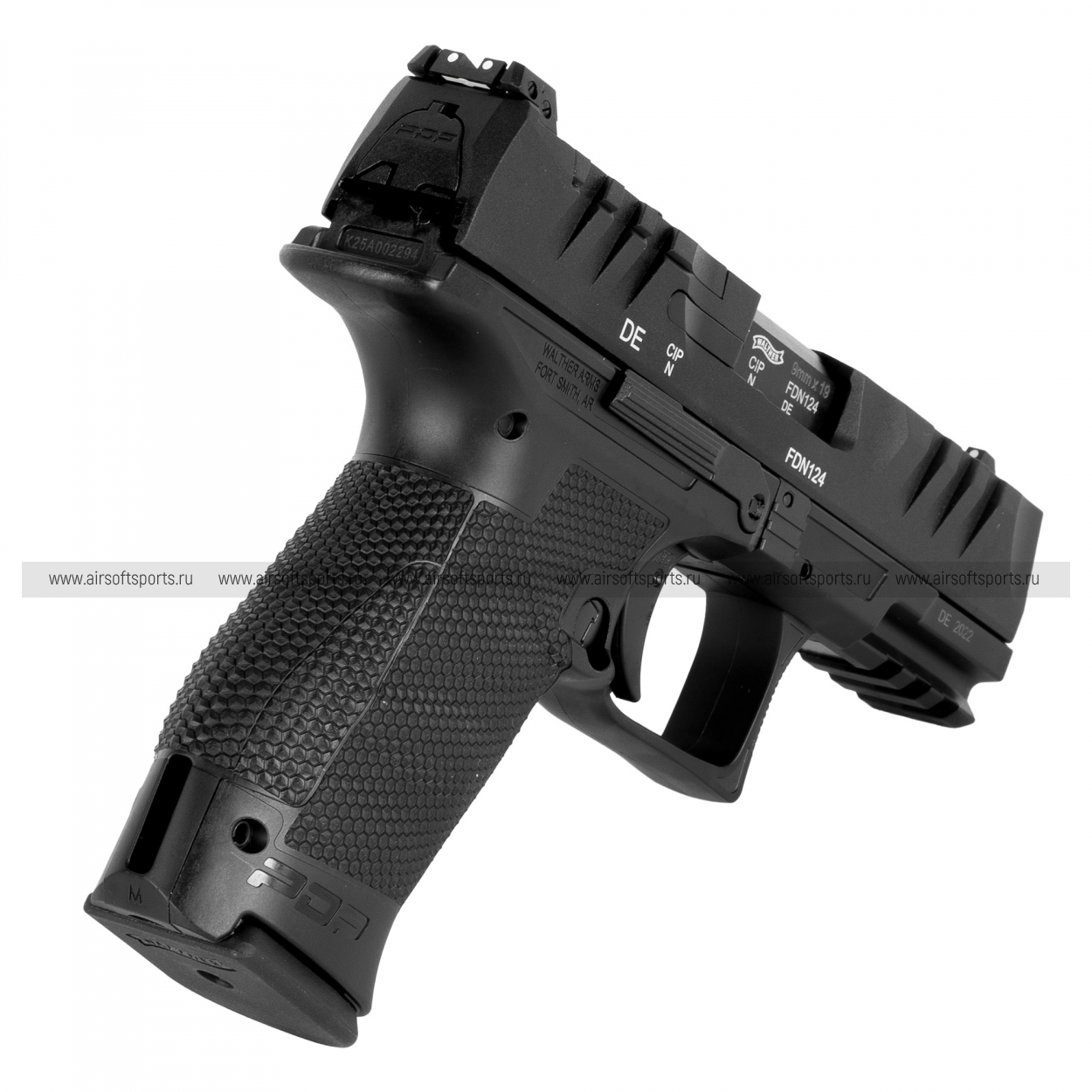 Рукоятка повторяет эргономику Walther PDP Compact: выраженная текстура для цепкого хвата, удобное "наполнение" ладони и очертания, обеспечивающие уверенное удержание даже в перчатках и при высокой влажности. На многих версиях предусмотрены сменные тыльные накладки (backstraps), позволяющие немного подогнать рукоять под размер руки стрелка. Внешний профиль и текстура сохранены максимально близко к оригиналу. Управление также копирует боевой прототип: двусторонняя или перекидная кнопка выброса магазина (в зависимости от версии), рычаг затворной задержки, спусковая скоба удобной формы. Сам спусковой крючок имеет современный "страйкерный" дизайн, с характерной безопасной "клавишей" внутри, как у оригинала.