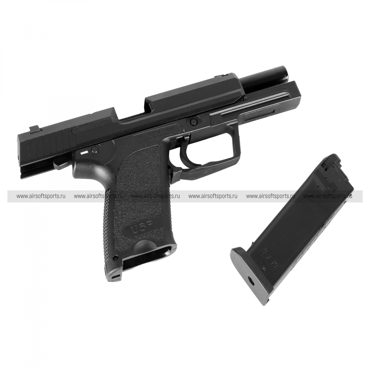 Страйкбольный пистолет работает по принципу GBB (Gas Blow-Back), обеспечивая реалистичную отдачу и работу затвора. Модель выполнена по официальной лицензии Heckler & Koch, что гарантирует наличие всех аутентичных маркировок и идеальное соответствие габаритам боевого прототипа.