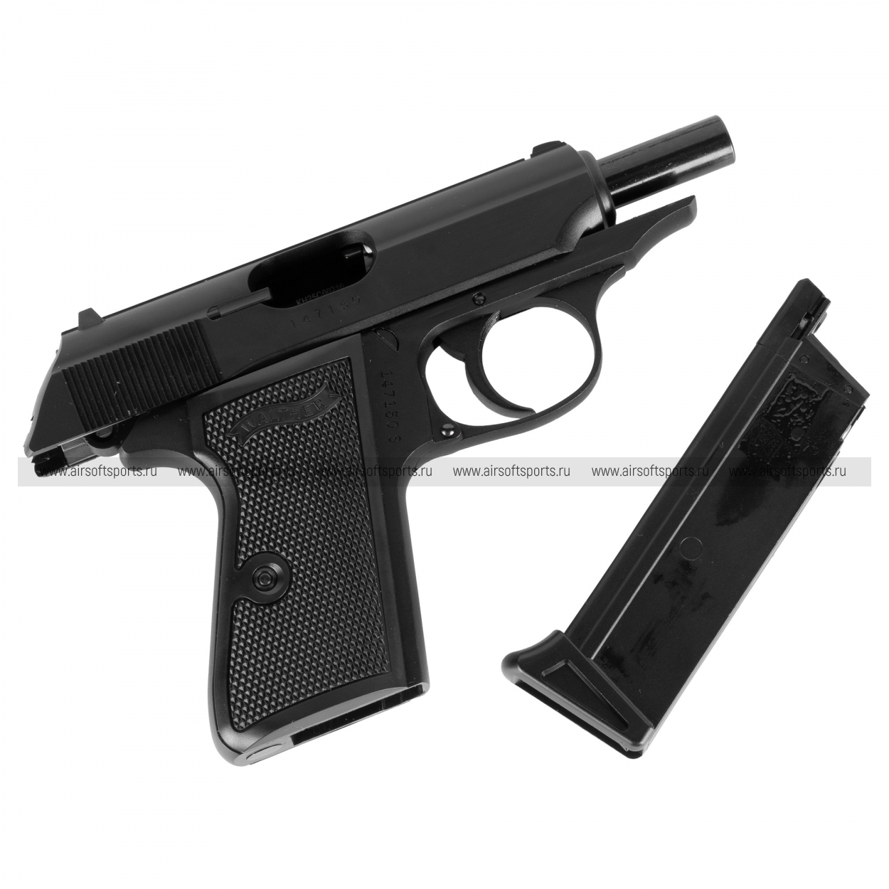Корпус и затвор металлические, за счёт чего пистолет ощущается “по‑взрослому” в руке: есть реальное чувство веса и инерции при отдаче, а внешний вид и тактильные ощущения сильно выигрывают по сравнению с пластиковыми моделями. Рукоять и отдельные элементы могут быть выполнены из полимера, как и у многих боевых компактных пистолетов, поэтому хват довольно комфортный для своей небольшой формы. Короткий ствол и компактные прицельные приспособления дают приемлемую, но не снайперскую точность: эта модель больше про стиль, реализм и удовольствие от стрельбы, чем про максимально эффективную игру на дальних рубежах. Автоматический предохранитель и логика управления повторяют реальные решения Walther: используются флажки и механизмы, которые привычны любителям классических европейских пистолетов.
