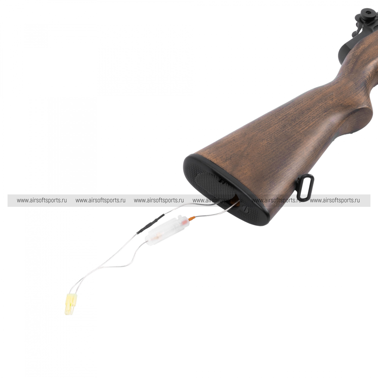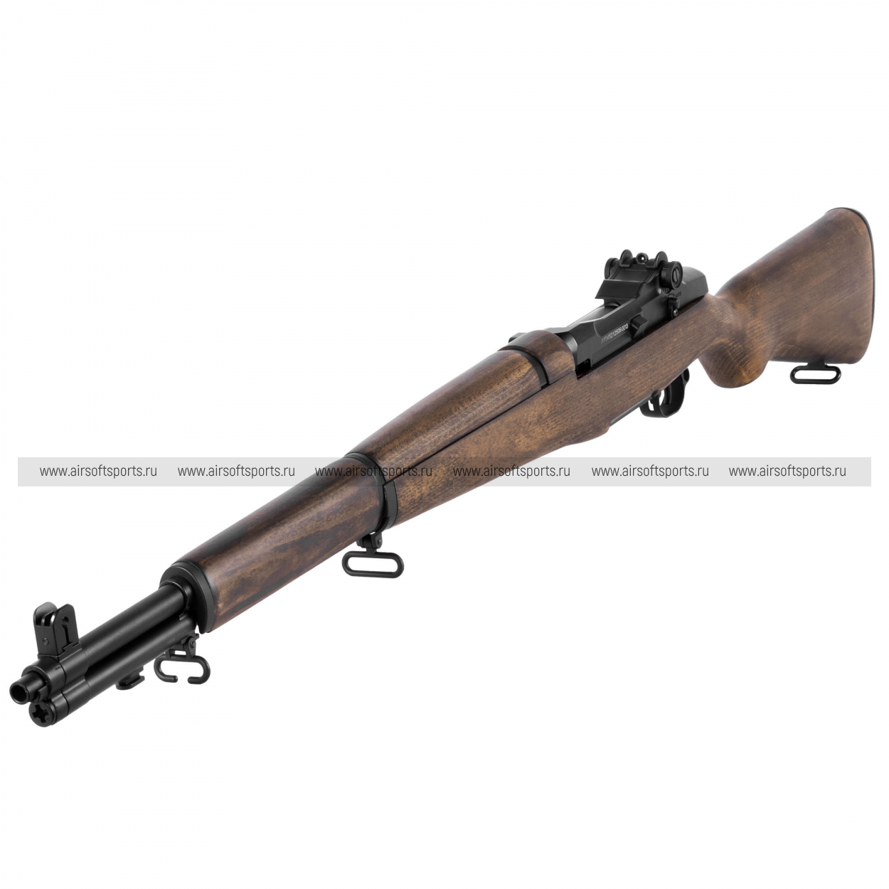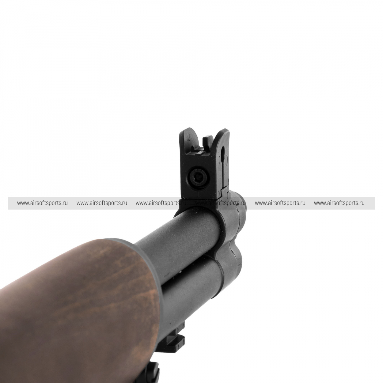 M1 Garand выглядит строго, благородно и очень аутентично. Длинная полноразмерная ложа под дерево формирует классический силуэт, который сразу ассоциируется с историческим оружием военной эпохи. Тёплый древесный оттенок эффектно сочетается с тёмными металлическими элементами, создавая выразительный и по-настоящему винтажный образ. Винтовка лишена лишних тактических деталей, и именно в этом заключается её главный визуальный шарм — всё выглядит цельно, просто и по-военному основательно. Характерные открытые прицельные приспособления, длинный ствол и массивная деревянная ложа делают модель особенно узнаваемой. В целом привод производит впечатление серьёзной, классической и очень атмосферной реплики, которая отлично подойдёт тем, кто хочет получить не просто страйкбольную винтовку, а исторически выразительный образец.