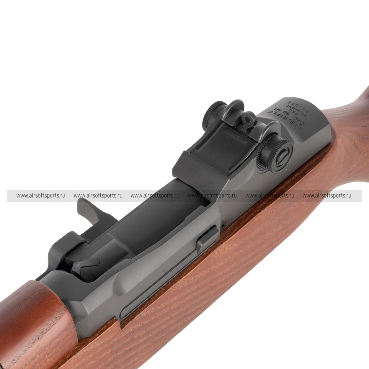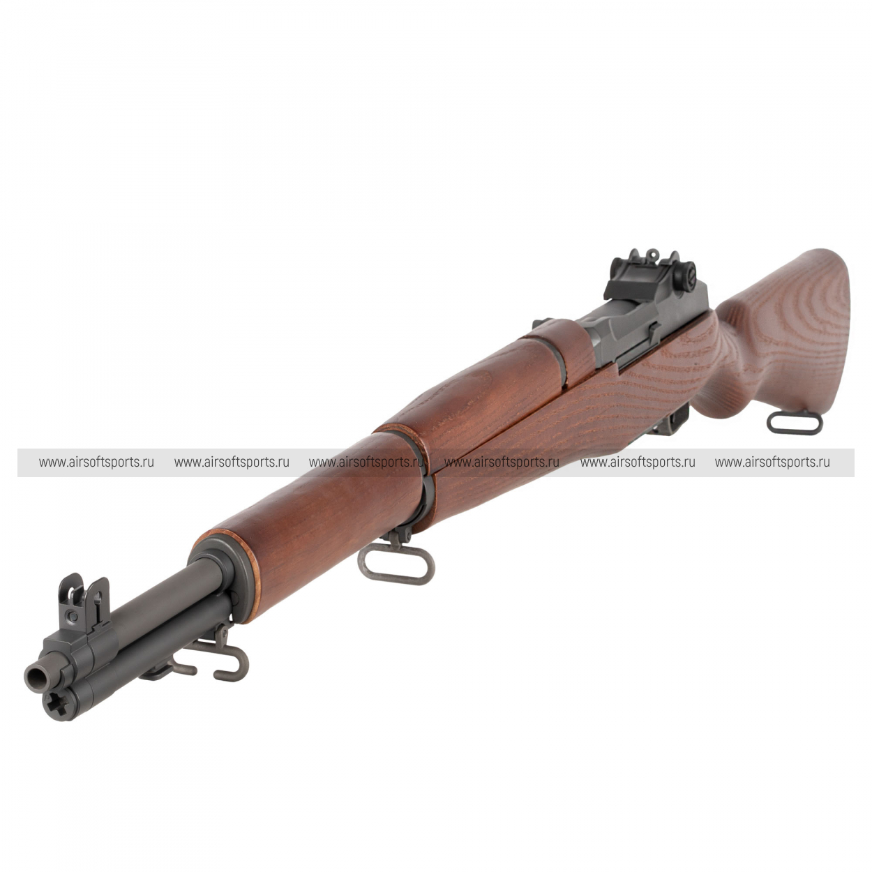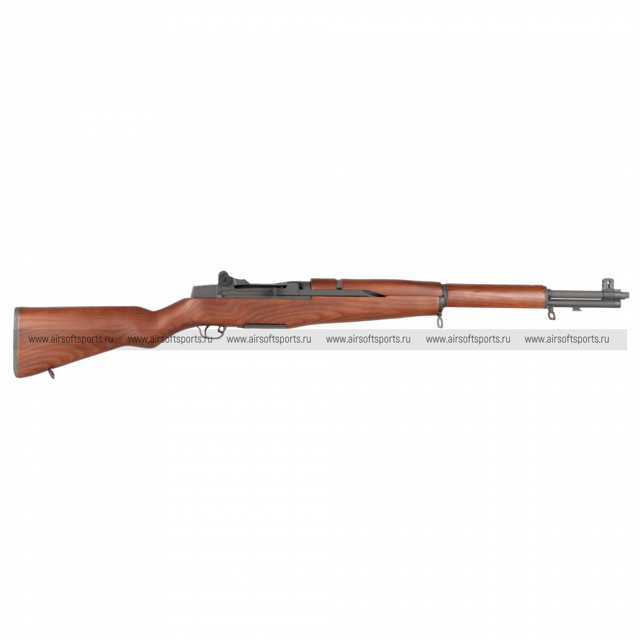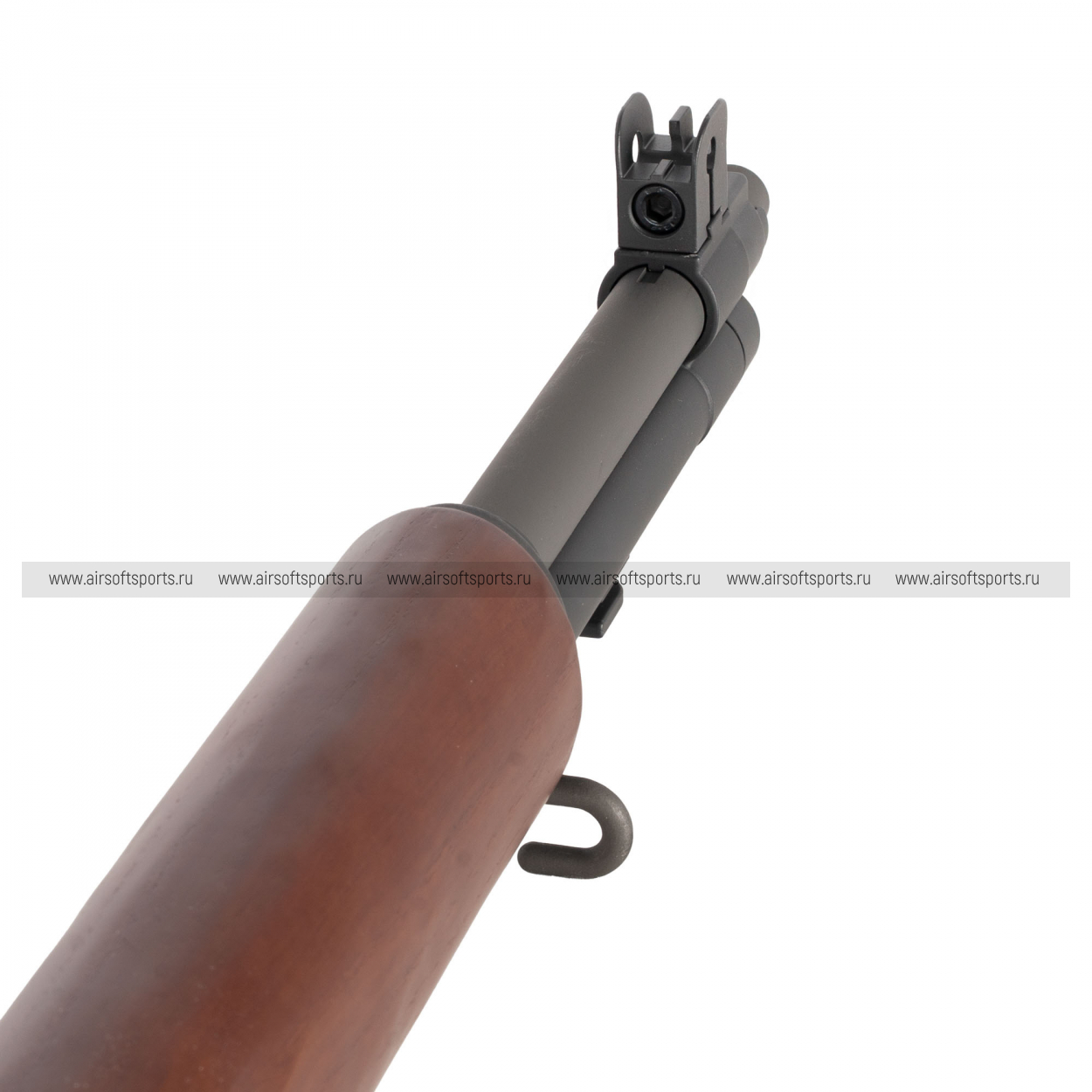 M1 Garand AEG выглядит солидно, аутентично и очень узнаваемо. Длинное деревянное ложе формирует цельный классический силуэт, а теплый оттенок под дерево эффектно контрастирует с темными металлическими элементами. Массивная ствольная часть, характерные механические прицельные приспособления и плавные линии приклада передают дух оригинальной винтовки. Это модель с ярко выраженной исторической эстетикой — строгой, благородной и по-своему очень выразительной.