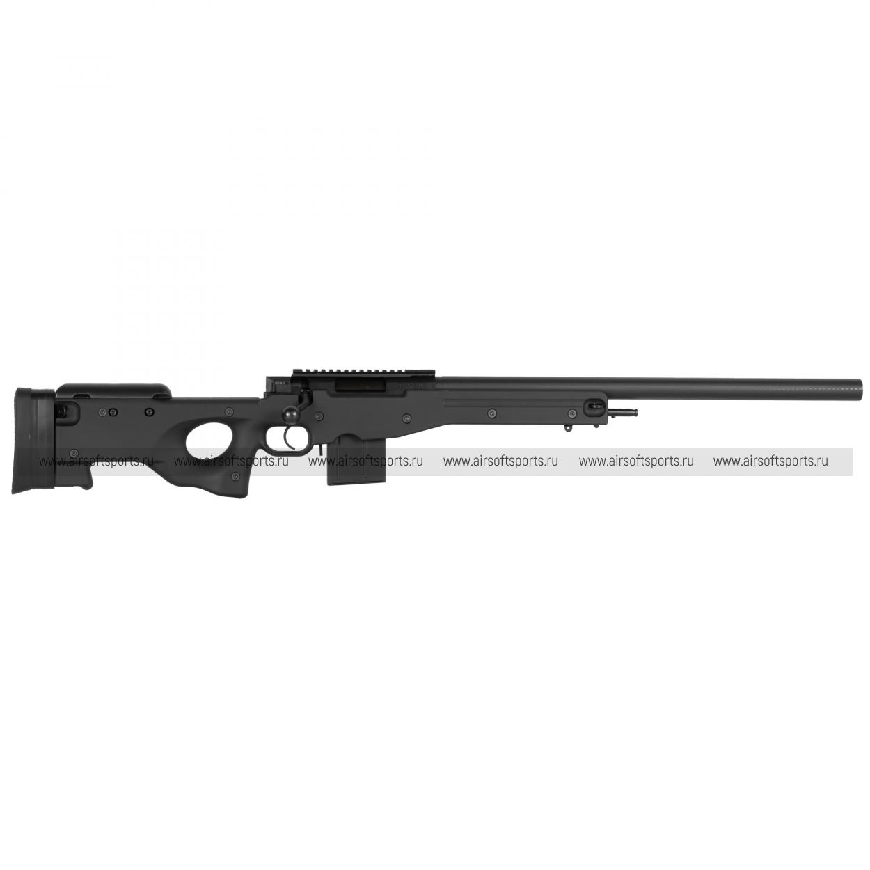 L96 AWS Bolt Action Sniper Rifle от Tokyo Marui – это реплика снайперской винтовки семейства L96, выполненная в формате болтовой системы с упором на высокую точность и стабильность стрельбы. Винтовка относится к пружинным (spring-powered) снайперским приводам: для каждого выстрела требуется вручную взводить затвор, что имитирует работу реального болтового оружия и одновременно обеспечивает ровную, предсказуемую начальную скорость шаров без влияния газа или батареи. Tokyo Marui традиционно делает акцент не на максимальной «из коробки» мощности, а на контролируемой скорости вылета, дальности и кучности, а также на качестве внутренней механики.