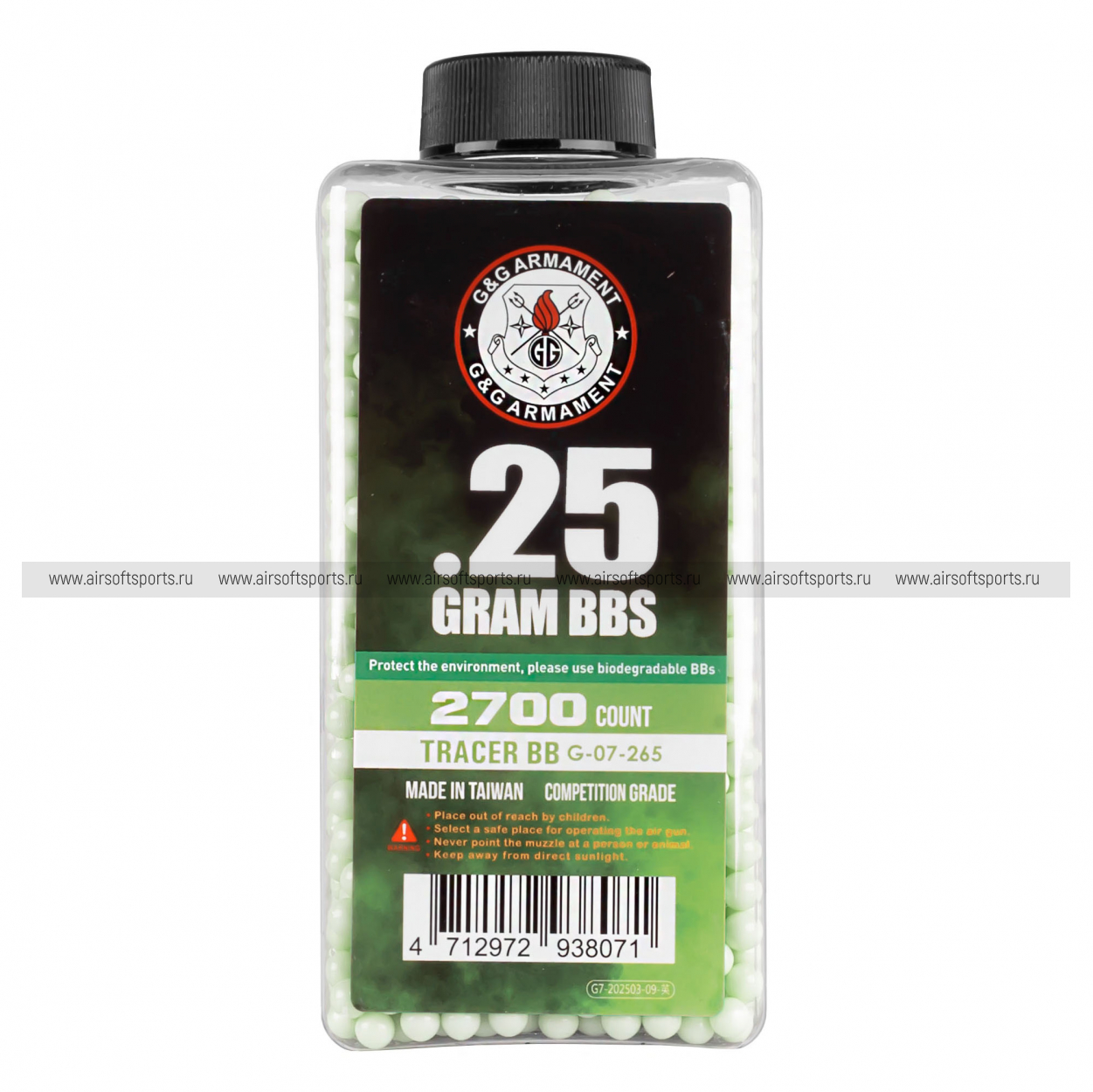 Шары G&G 0,25 трассер зеленый (2700 шт.,банка)