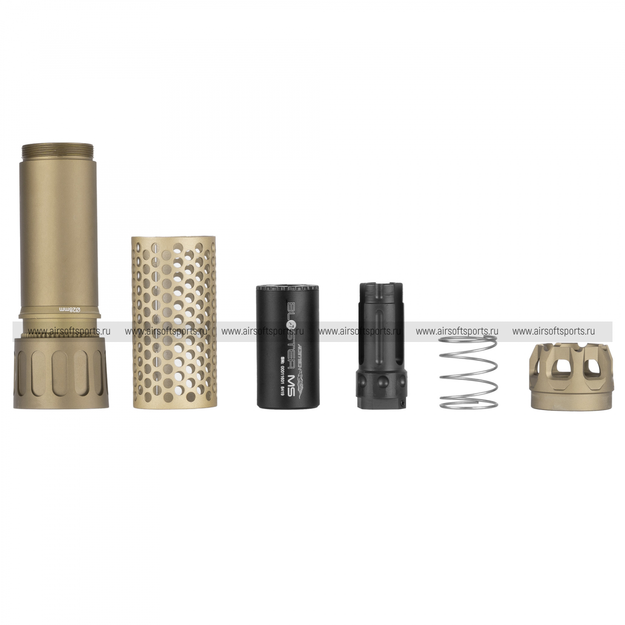 Устанавливается Blaster MS на привод при помощи пламегасителя с резьбой 14-, который поставляется в комплекте. За счет специального адаптера с 11+ на 14-, трассерную насадку Blaster MS можно установить на пистолет с резьбой 11+.