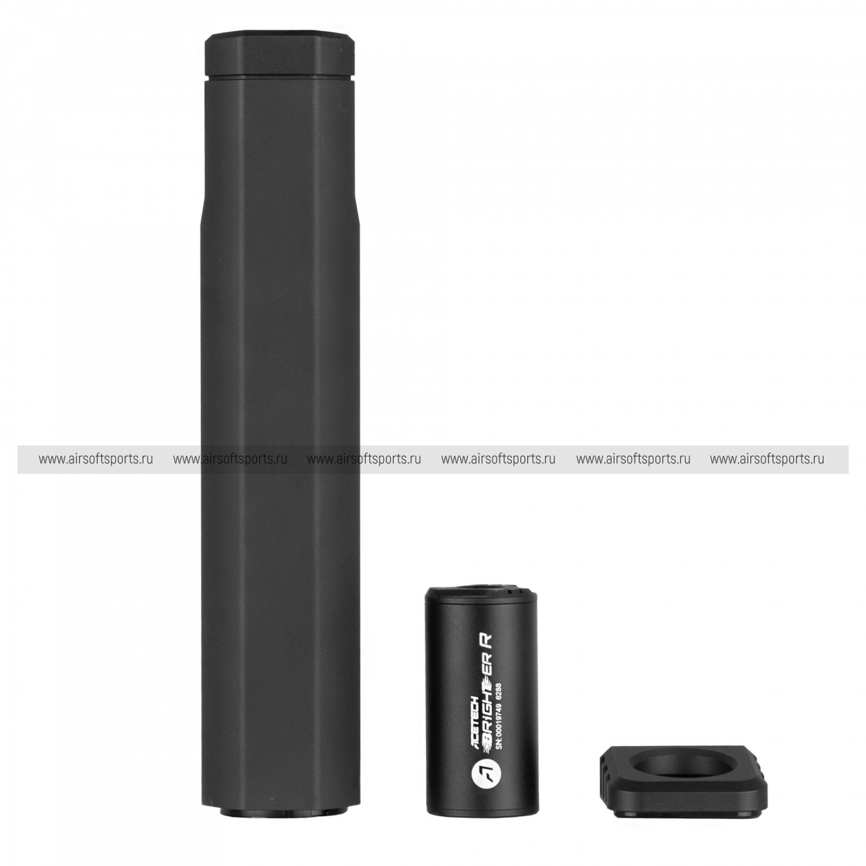 Brighter R от ACETECH является одной из самых самых маленьких (диаметр 28 мм, длина 57 мм) и яркой трассерной насадкой, разработанной для страйбкольных приводов. Благодаря своим небольшим размерам, она легко устанавливается в глушители и цевья, если их внутреннее пространство больше, чем габариты Brighter R.