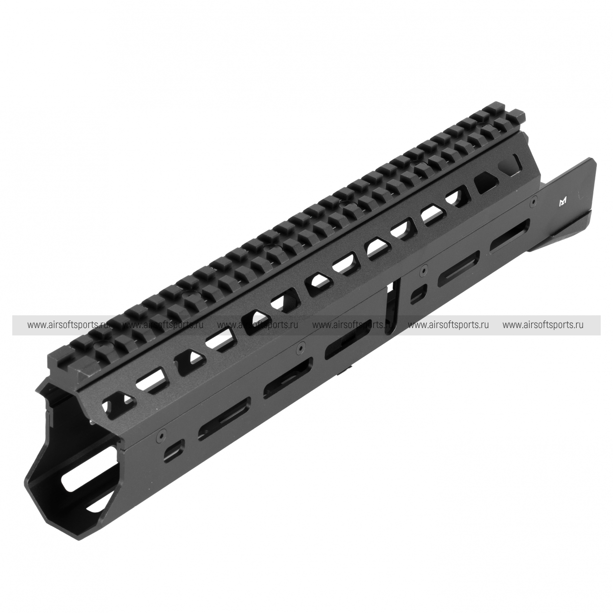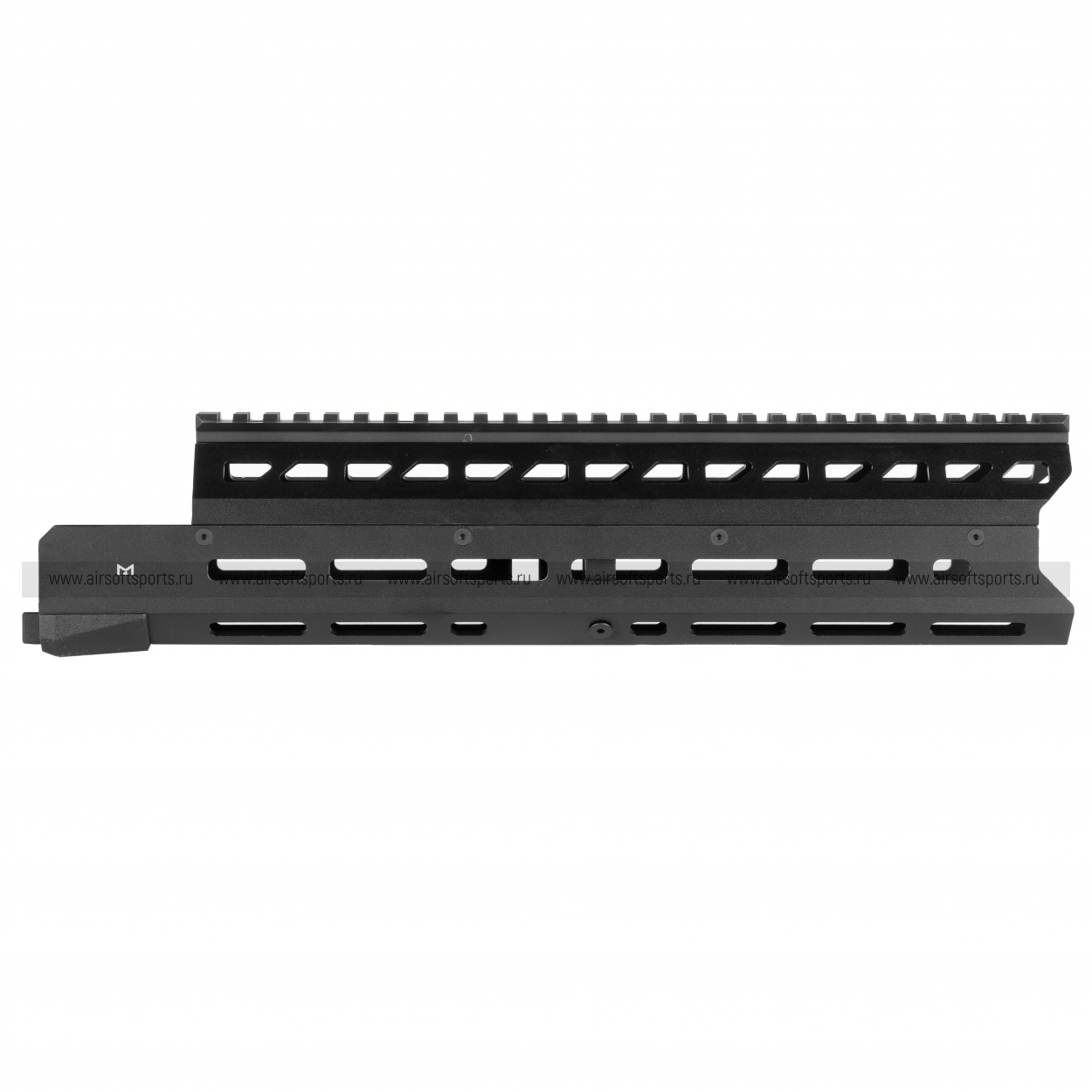 Есть слоты M-LOK для установки ЛЦУ, фонарей и рукояток; сверху находится планка Picatinny для прицелов.