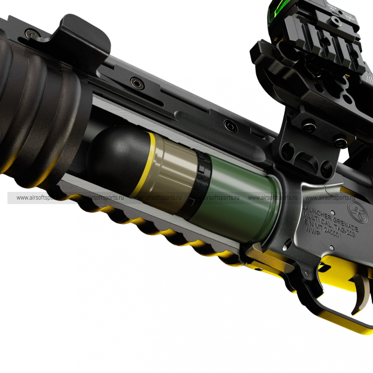 Подлежит отстрелу из 36мм пусковых устройств: «ТАГ-203 МТ», «TAG ML-36-MT».