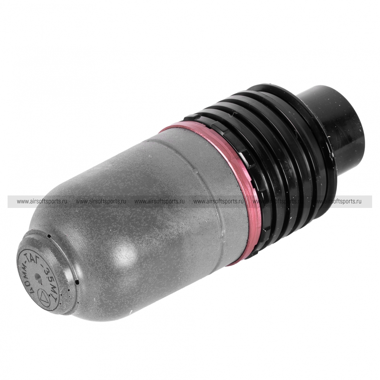 40-мм имитационный выстрел для подствольного гранатомета TAG-35 серии MT (Military Training) от компании TAG Innovation предназначен для тренировочных целей. Он оснащен условно-поражающими элементами в виде страйкбольных шариков, которые разлетаются при срабатывании заряда. Радиус опасной зоны составляет 30 метров. Инициация (взрыв) происходит с задержкой по времени.