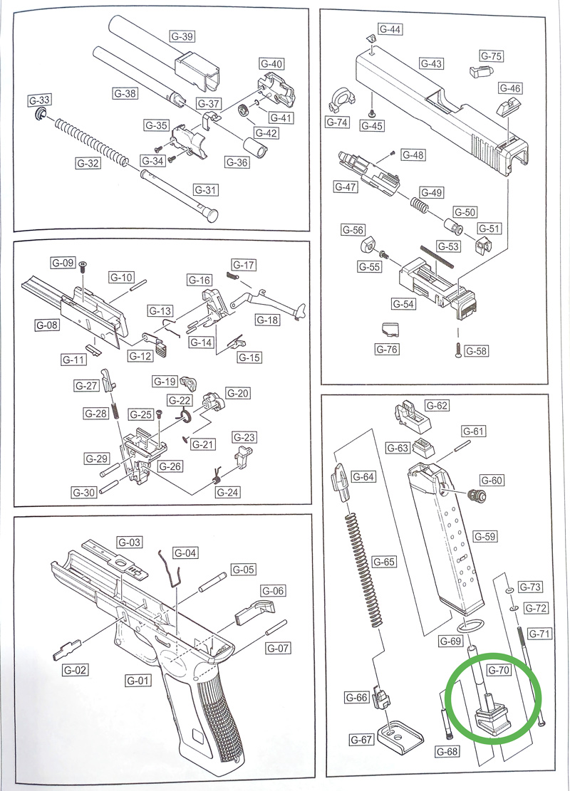 Предназначено для ремонта и тюнинга страйкбольных пистолетов Glock G17 (Gen.3 Gen.5). Имеет уплотнительную резинку и посадочное место для клапана.