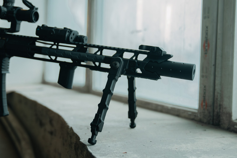 Получается универсально: в коридоре удобнее работать с рукоятью, а при стрельбе, например, из окна — сошки на подоконнике реально добавляют стабильности (если, конечно, остальные факторы не мешают).